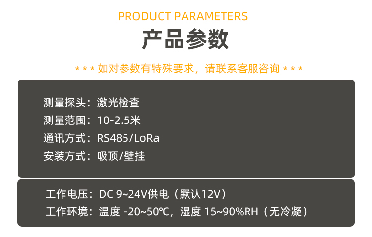 測量探頭:紅外光電探頭(發送端、接收端一體式,漫反射原理);主動感應 安裝方式:壁掛式、吸頂式 安裝高度:0.5米(壁掛式,水平測量);2.5米(吸頂式,垂直測量) 測量范圍:0.2-2米 探測角度:<15度錐形角 測量誤碼率:<1% 響應時間:0.5秒 信號輸出:NPN、PNP多種輸出,常開、常閉可選 負載功率:30W |